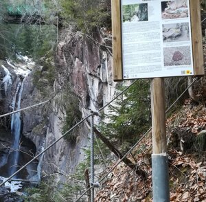 - 2) Partendo a piedi dalla località Marmolada, percorrendo il torrente Gavon, è possibile immergersi nelle diverse ere geologiche che hanno modellato il paesaggio dolomitico. Guardando le pareti rocciose, scavate dal torrente, si osservano la tessitura della roccia, i suoi colori e le sue forme: tutto ciò è un libro aperto sulla geologia che assieme alle illustrazioni riportate sulle tabelle esplicative raccontano la morfologia e la storia di questo luogo.